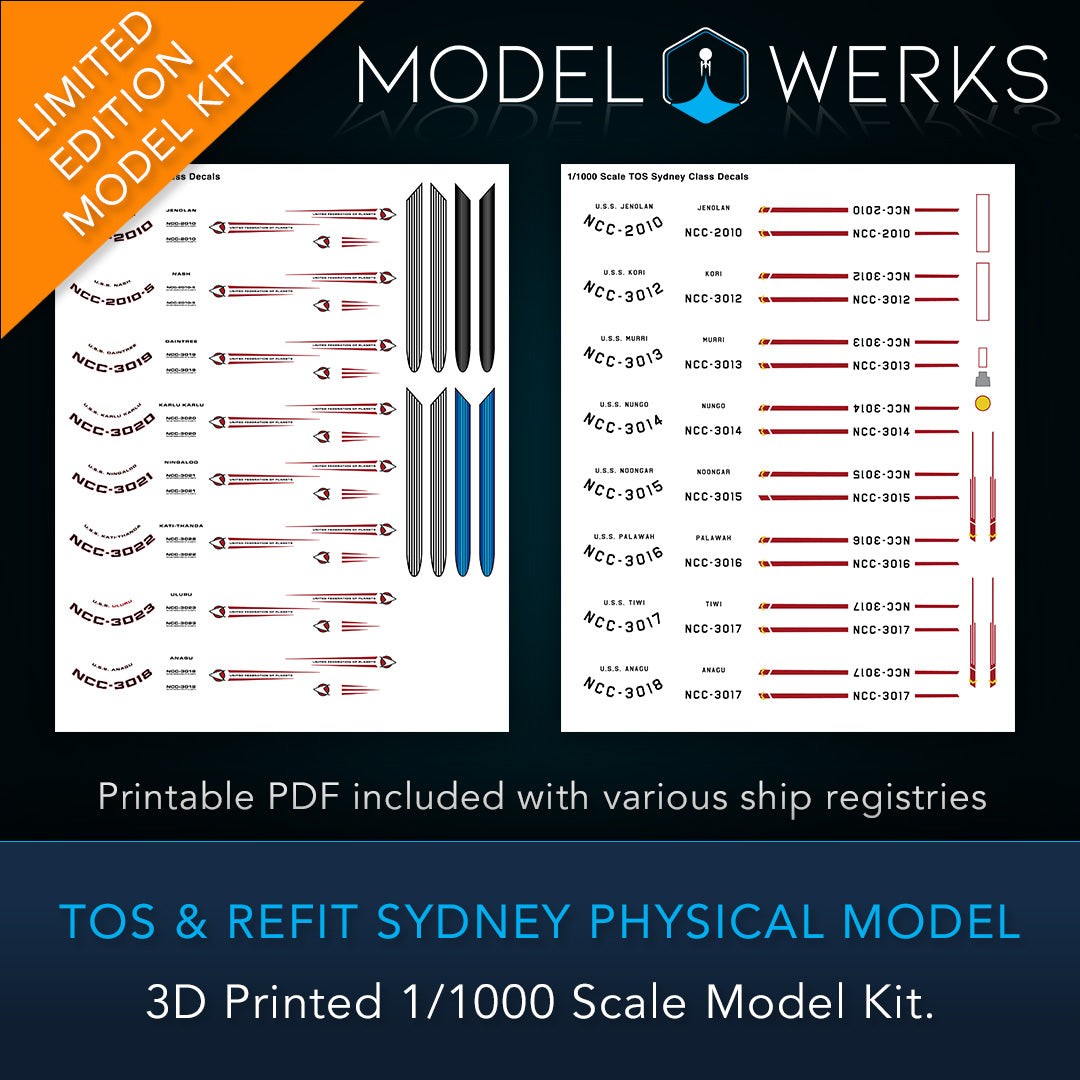 Included is a decal sheet with the name and registry of your choice. Please email support@modelwerkshop.com after purchase to send that information over.