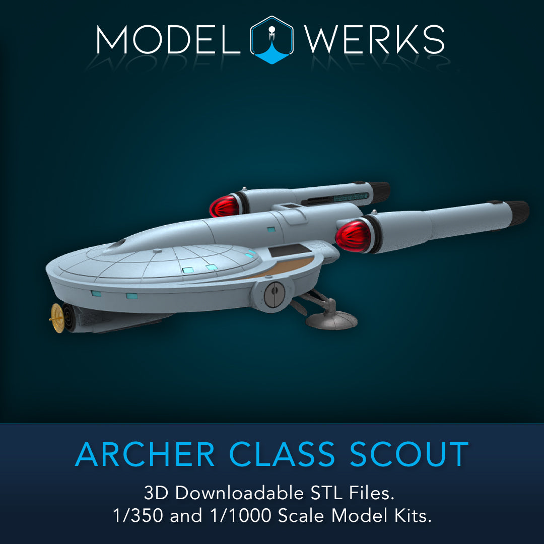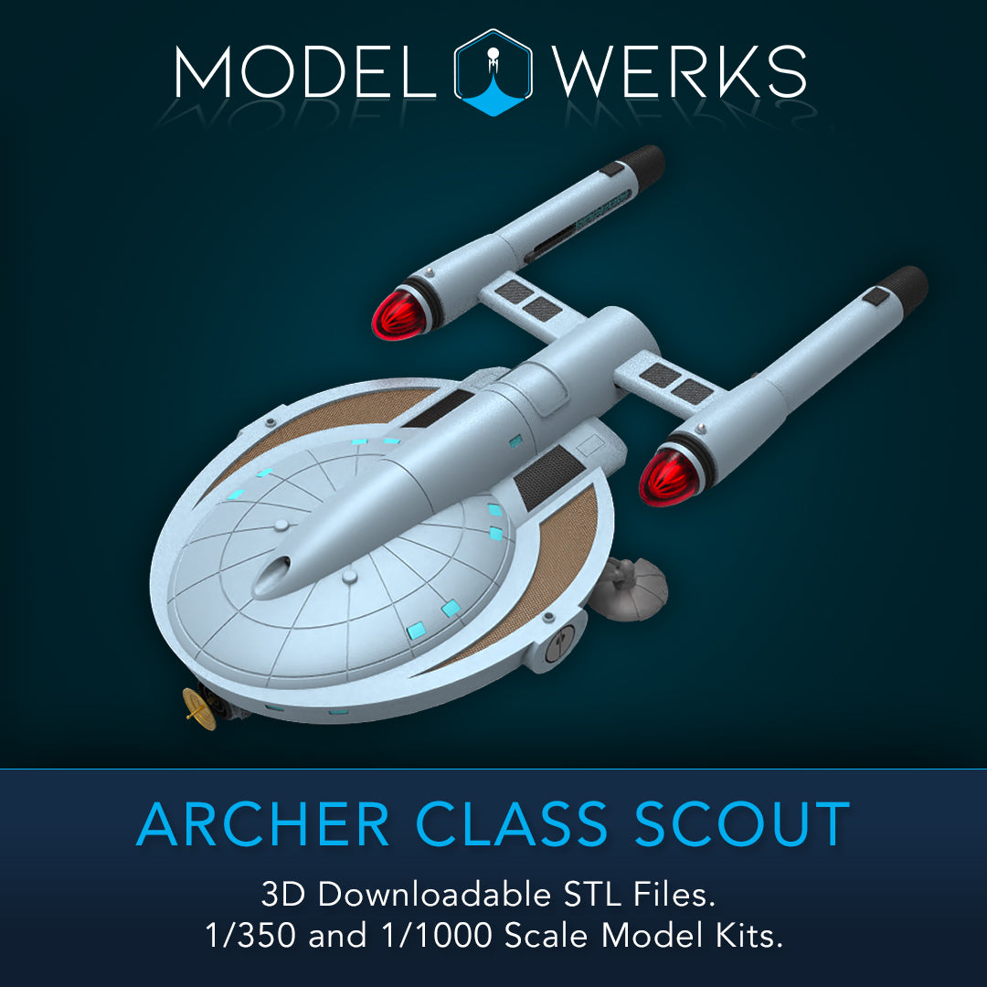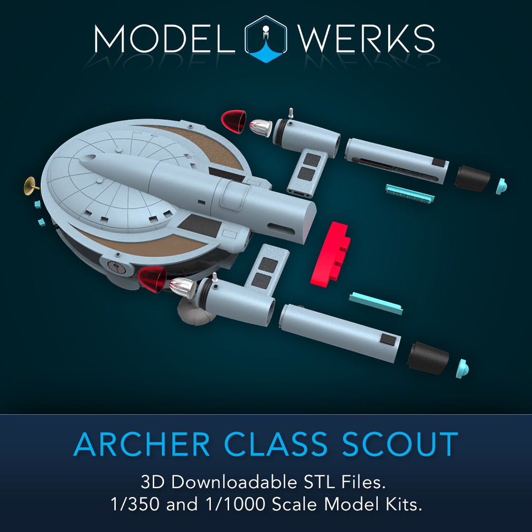 These files are designed to build the fan favorite Archer Class Scout. You can choose between a 1/350 or 1/1000 build and a decal sheet graphic is included for both scale ships. Time to go explore the unknown in style.