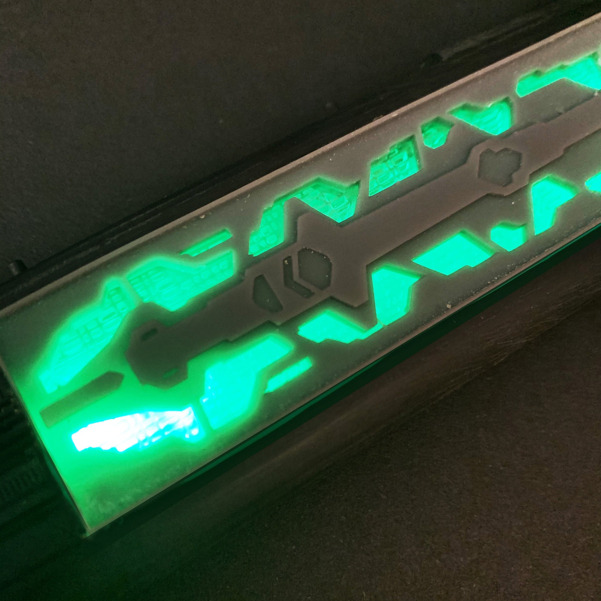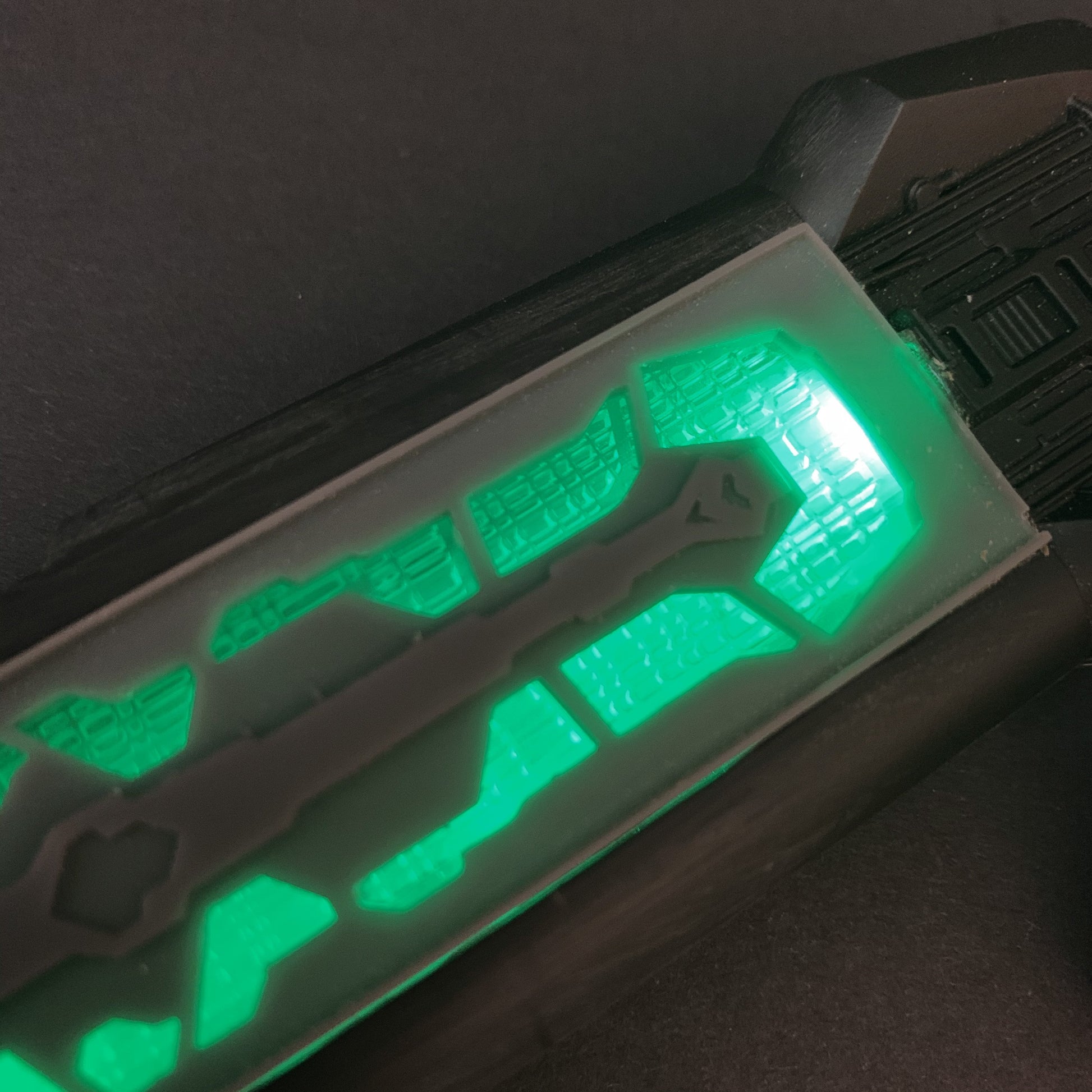 Designed to replicate the glowing inner nacelle portion of the warp engine as seen on the Kronos One and the K’tinga cruisers seen in DS9.