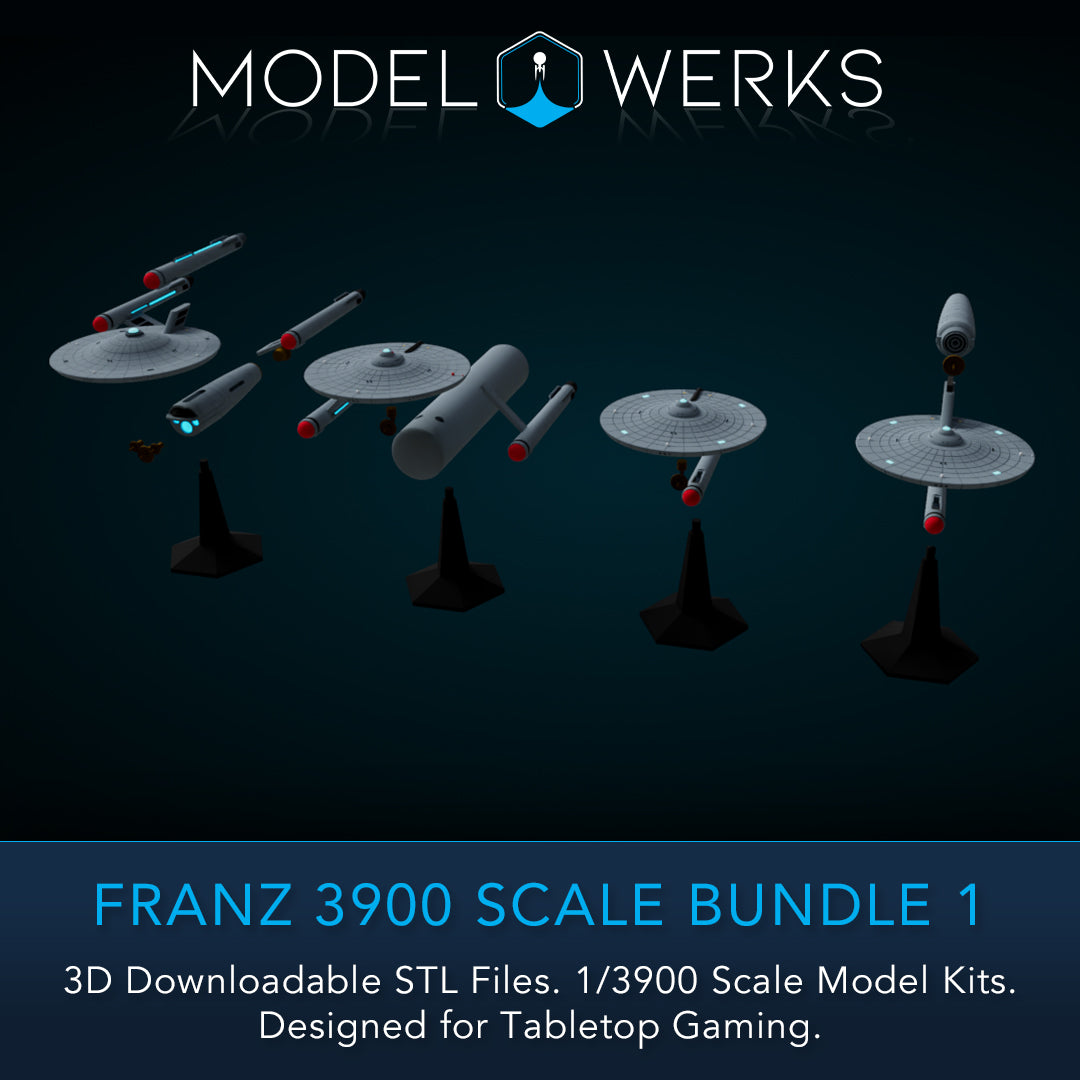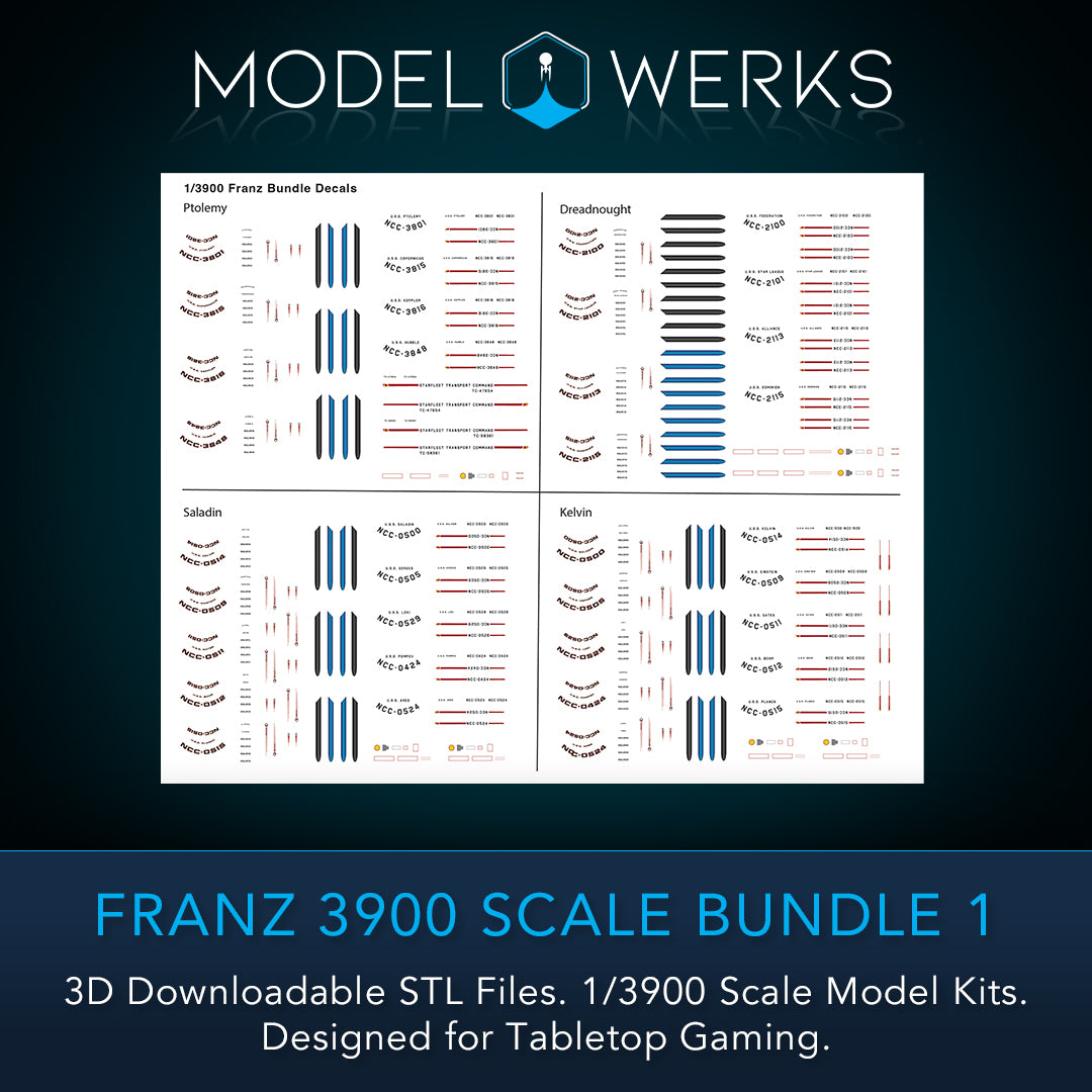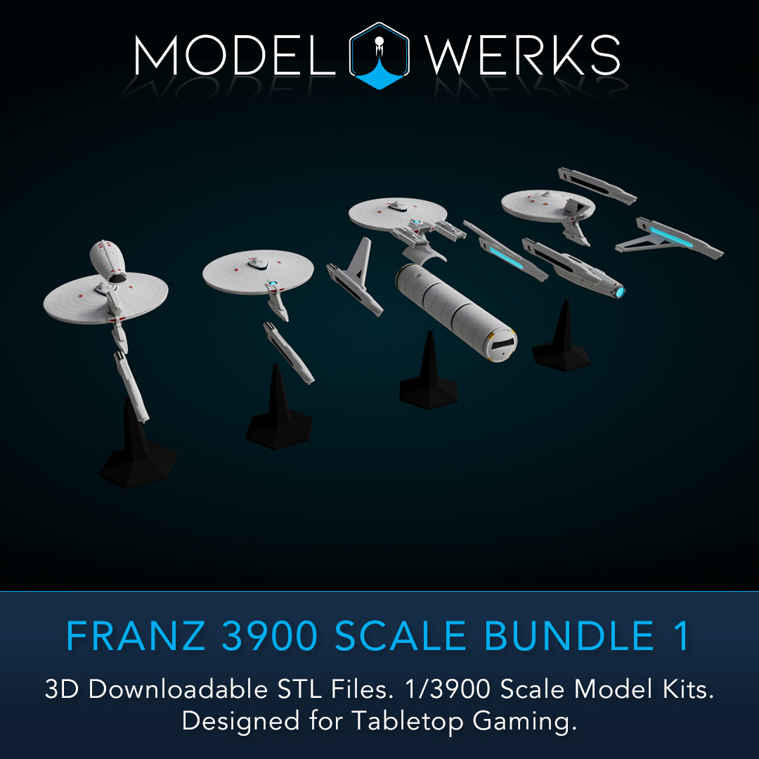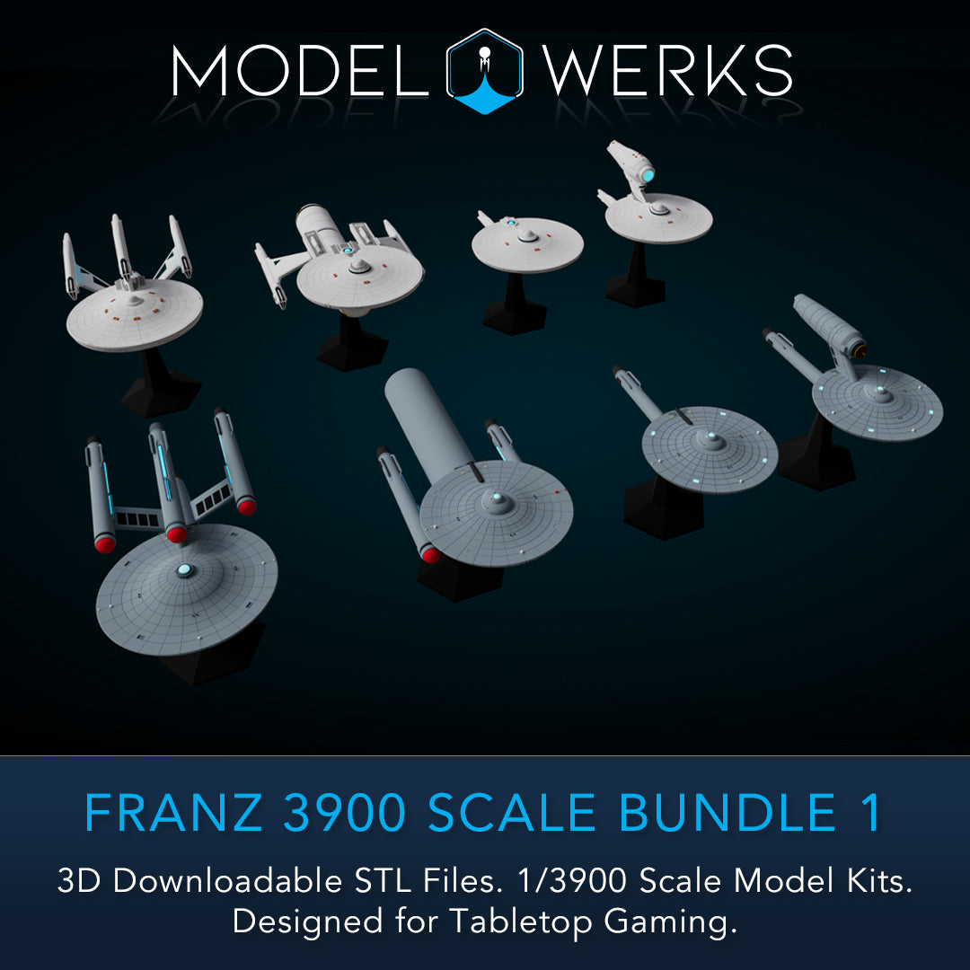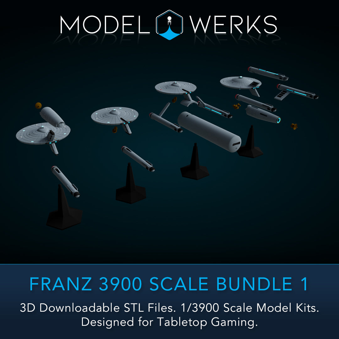 This 3D printable spaceship model bundle is 1/3900 scale for tabletop gaming.