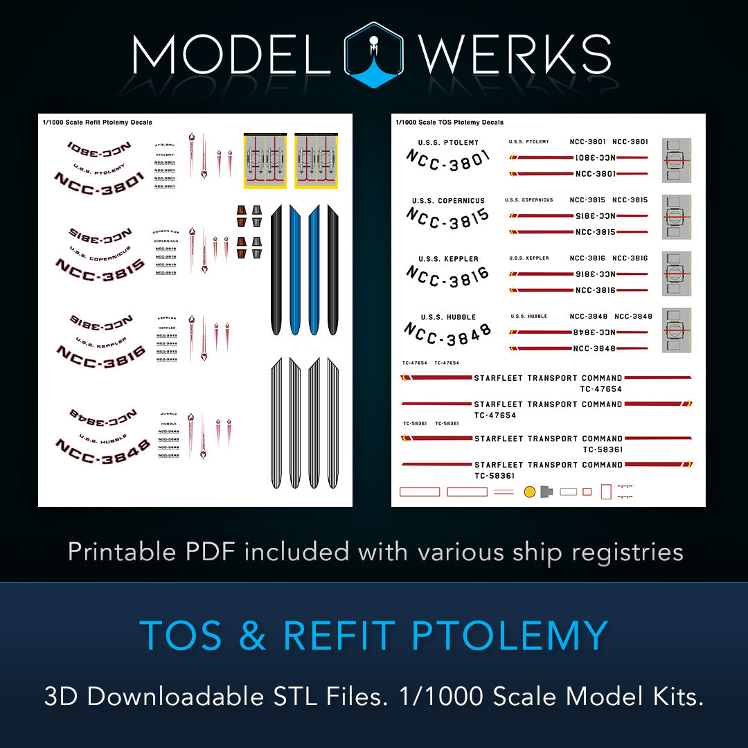 I’ve included a PDF and PNG printable decal sheet with TOS era and Motion Picture Era markings.